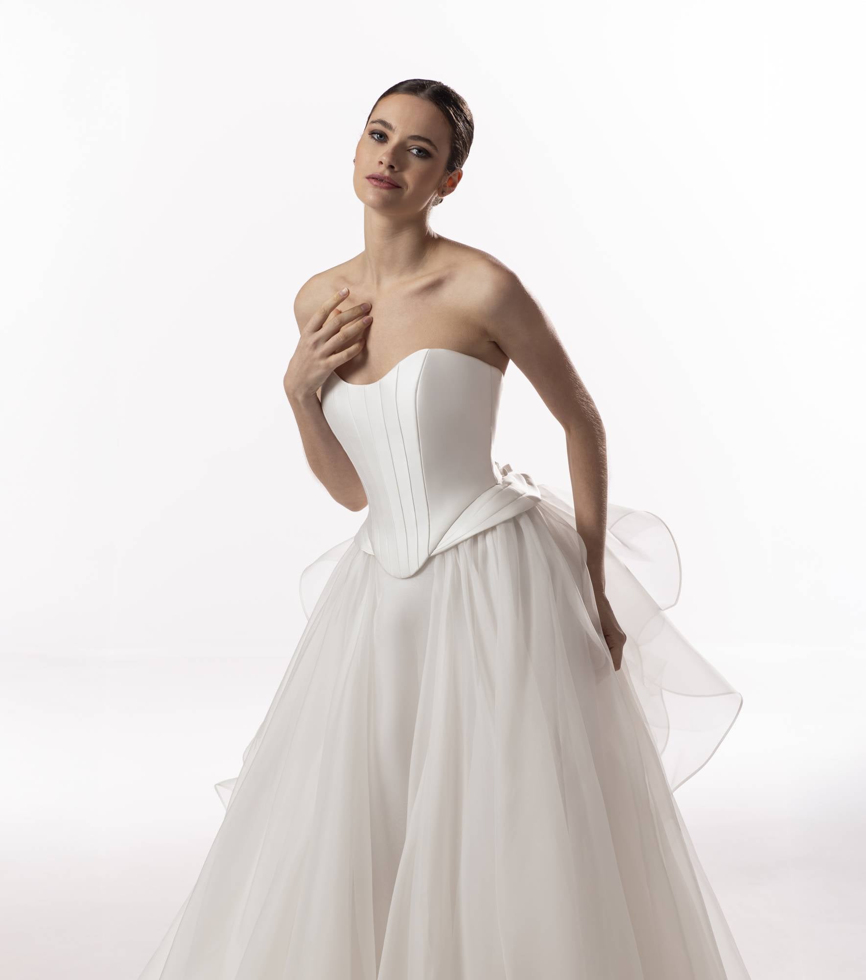 L’ideale è ordinare l’abito 9–12 mesi prima del matrimonio. Se invece hai tempi più stretti, in atelier trovi anche modelli in pronta consegna, da provare e portare a casa anche in giornata (in base alla disponibilità).