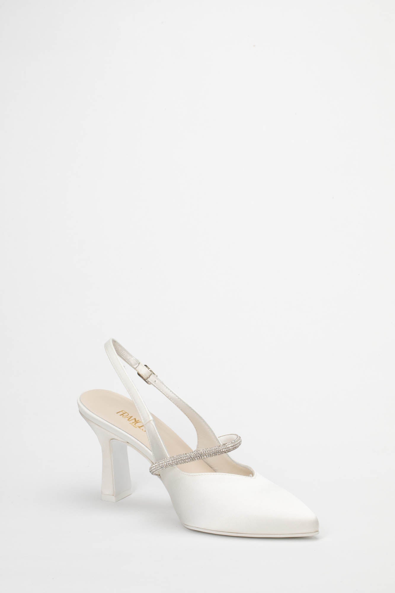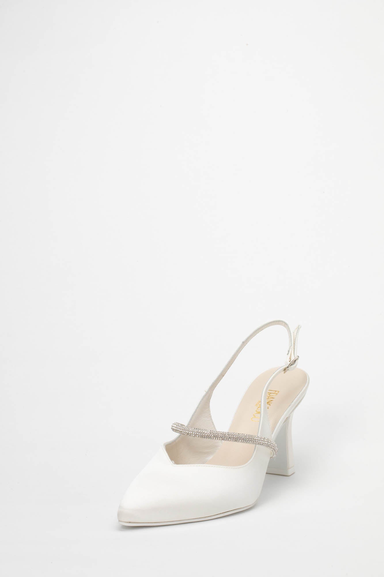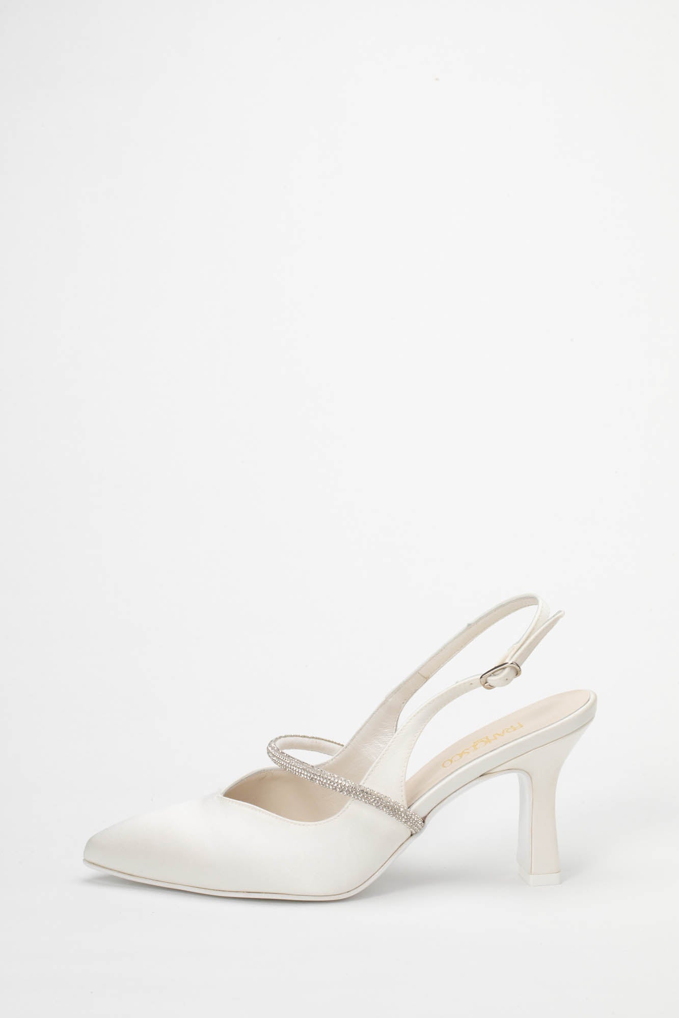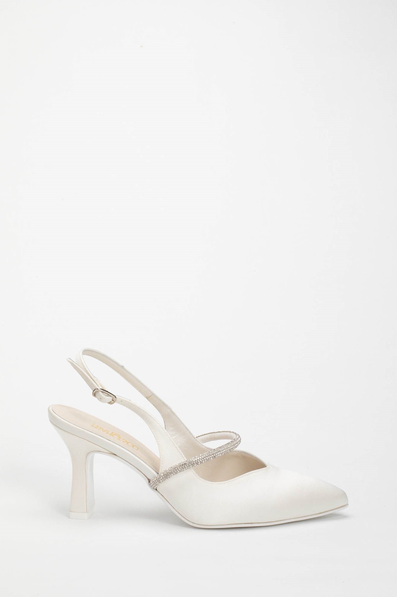 La caratteristica distintiva di questo modello è il tacco da 7 cm, un'altezza media che slancia con delicatezza senza affaticare il piede. La stabilità è garantita dalla forma a rocchetto moderna del tacco e dal cinturino regolabile che avvolge il tallone, offrendo una calzata sicura sia durante il cammino verso l'altare che nei momenti di festa. Il design a punta sfilata è impreziosito da un tocco di luce irresistibile: un sottile listino trasversale ricoperto di strass luminosi che attraversa il collo del piede, aggiungendo un dettaglio gioiello che cattura lo sguardo a ogni movimento. La Brenda 9707 è l'emblema del Made in Italy, dove l'attenzione per il dettaglio trasforma una calzatura classica in un accessorio di lusso discreto, perfetto da abbinare ad abiti in stile minimal, vintage o a sirena. Come per ogni nostra proposta, è possibile richiedere la personalizzazione del modello per renderlo unico: contattaci per scoprire come adattare questa creazione al tuo stile.