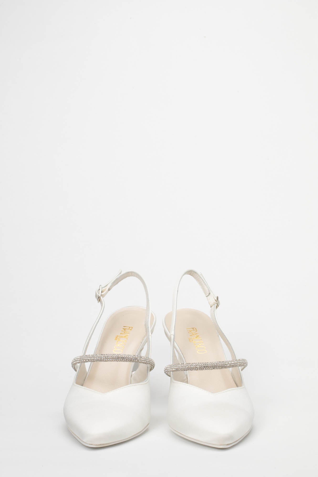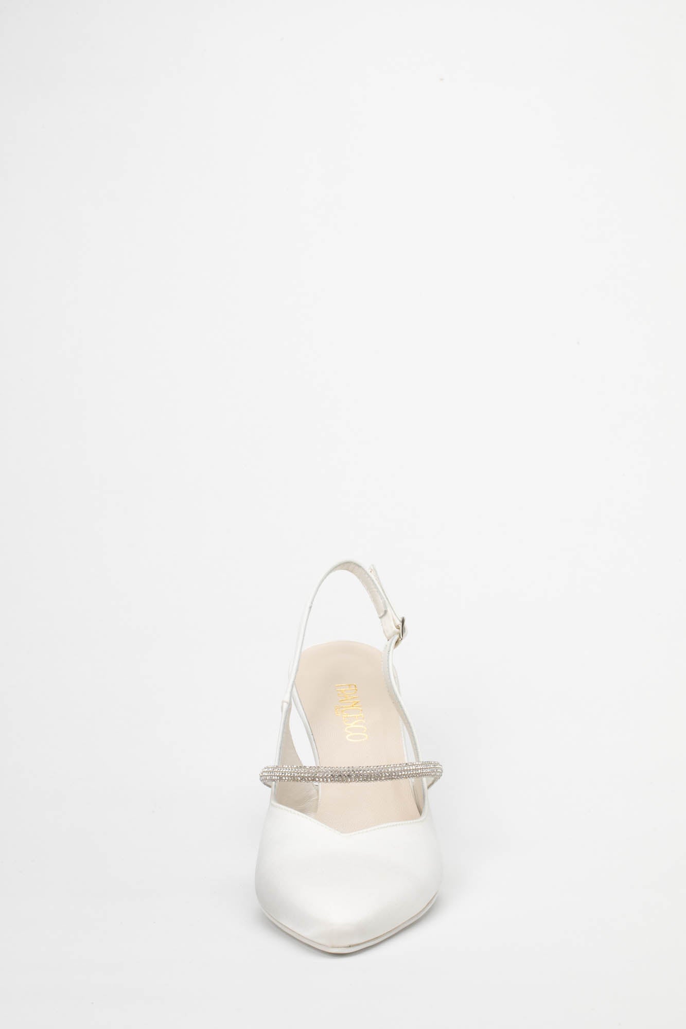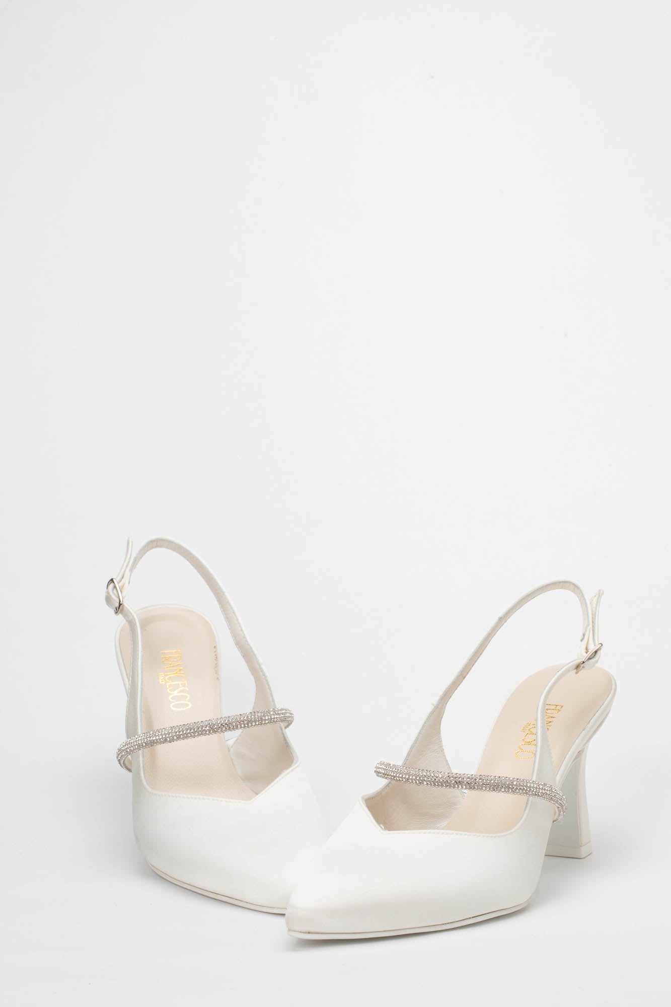 Se cerchi l'equilibrio perfetto tra bon-ton e comfort, la Brenda 9707 del Calzaturificio Francesco è la scelta ideale. Questa raffinata décolleté modello slingback, realizzata in una pregiata finitura color avorio/seta, incarna un'eleganza senza tempo, pensata per la sposa che desidera una scarpa chic ma estremamente confortevole per tutta la durata dell'evento.