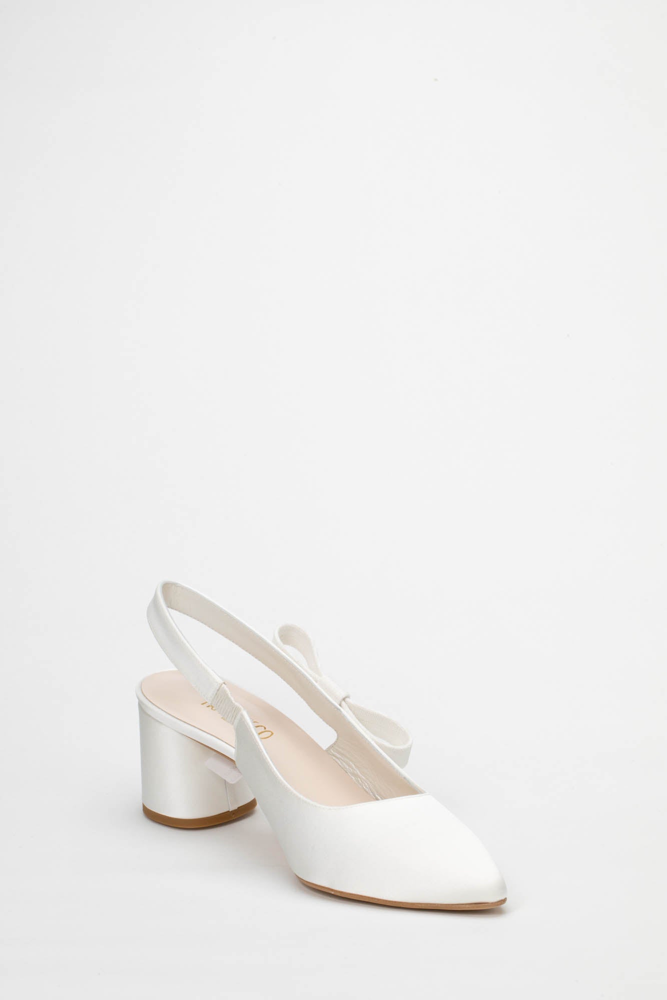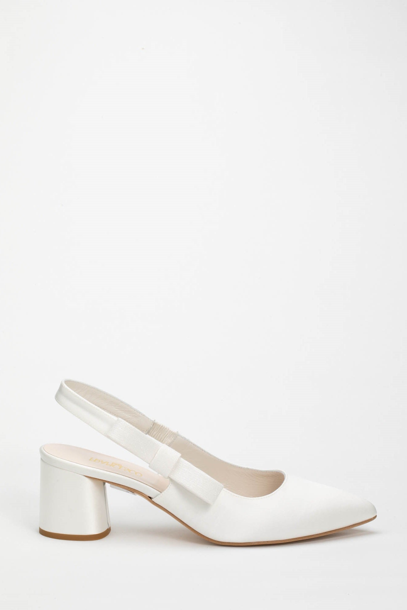 L'eleganza incontra il design contemporaneo nelle decolleté sposa modello P/50, una calzatura pensata per la donna che sogna un look nuziale sofisticato senza rinunciare alla stabilità. Realizzate in pregiato satin avorio, queste scarpe si distinguono per la lucentezza discreta e la texture setosa, una tonalità classica che si sposa armoniosamente con gli abiti in seta, pizzo o mikado, garantendo una coerenza cromatica impeccabile. Il design è caratterizzato dall'iconico stile slingback, con un delicato cinturino che avvolge il tallone garantendo una tenuta sicura e una linea slanciata. Il vero protagonista di questo modello è il tacco cilindrico da 5 cm: una scelta di stile moderna che assicura una base d'appoggio solida e confortevole, ideale per affrontare con disinvoltura ogni fase della giornata, dalla camminata verso l'altare ai festeggiamenti più dinamici. A completare l'estetica romantica della scarpa troviamo un grazioso fiocchetto sulla punta. Come per ogni nostra proposta, è possibile richiedere la personalizzazione del modello per renderlo unico: contattaci per scoprire come adattare questa creazione al tuo stile.