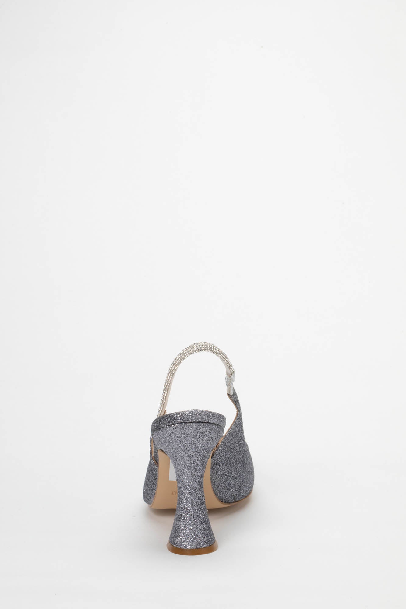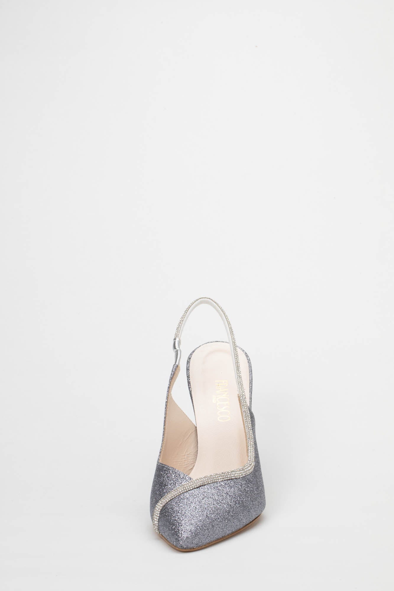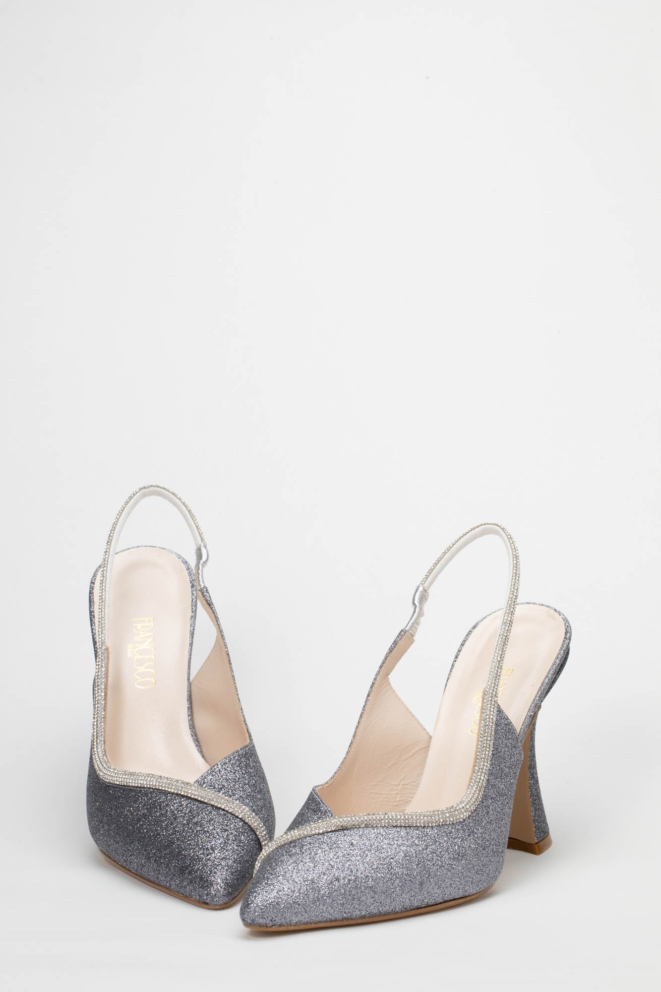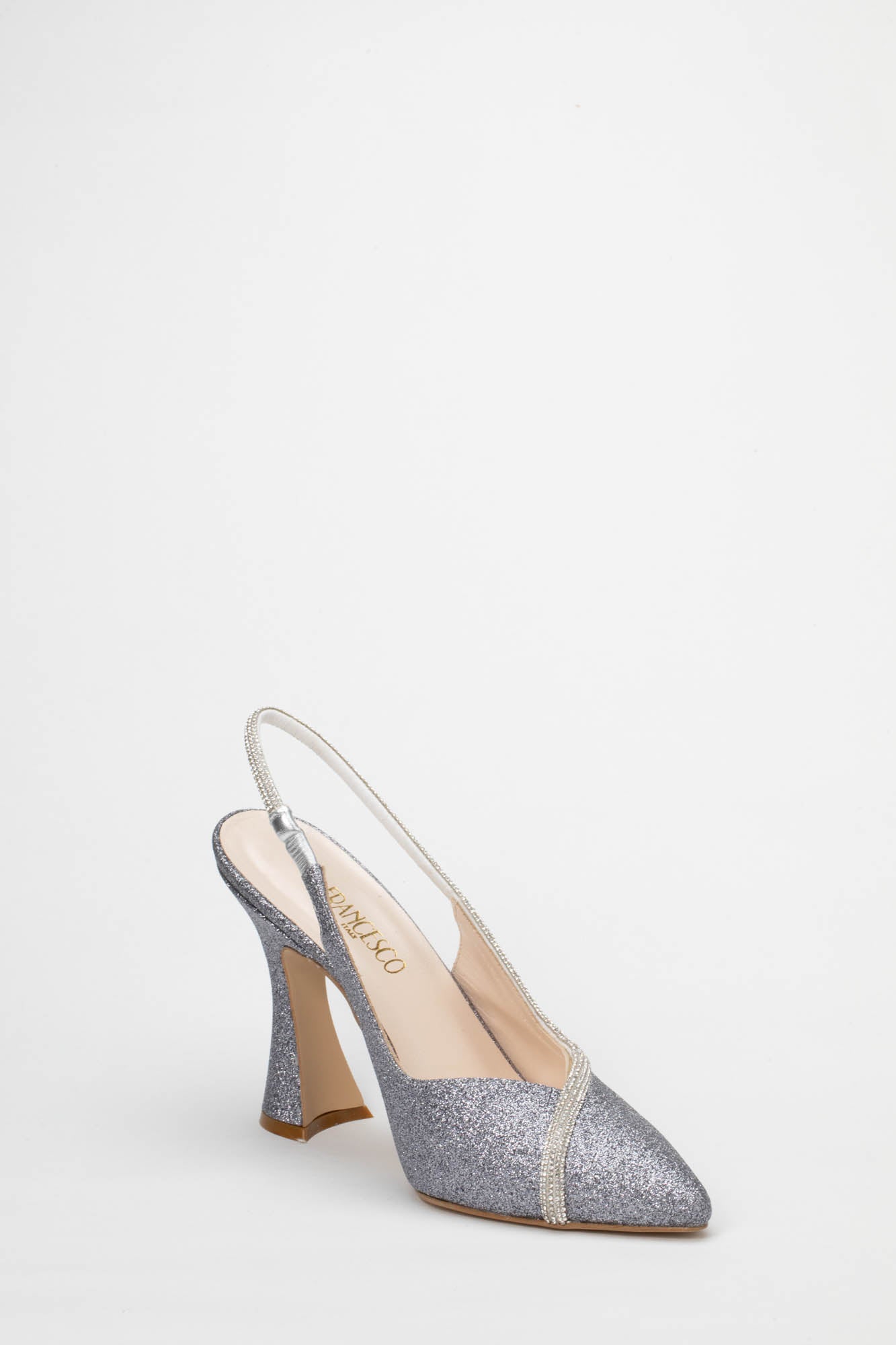 Il modello 9834 rappresenta l'ultima frontiera dell'eleganza nuziale, una décolleté pensata per la sposa che desidera distinguersi attraverso dettagli di puro design e una luminosità senza pari. Questa calzatura è interamente realizzata in un pregiato glitter color antracite, una tonalità fredda e sofisticata che si discosta dal classico bianco per offrire una sfumatura moderna e notturna. La particolarità della tomaia risiede nello scollo a V, un taglio audace e iper-femminile che allunga visivamente la linea del piede e della gamba, regalando una silhouette slanciata e di estrema classe. L'elemento di assoluta tendenza di questa scarpa è il suo tacco a clessidra da 9 cm. Questa particolare architettura non è solo un dettaglio estetico di grande impatto, ma offre anche un vantaggio funzionale: la base leggermente più ampia rispetto a un tacco a spillo tradizionale garantisce una maggiore stabilità e una migliore distribuzione del peso, pur mantenendo tutta la sensualità di un tacco alto.