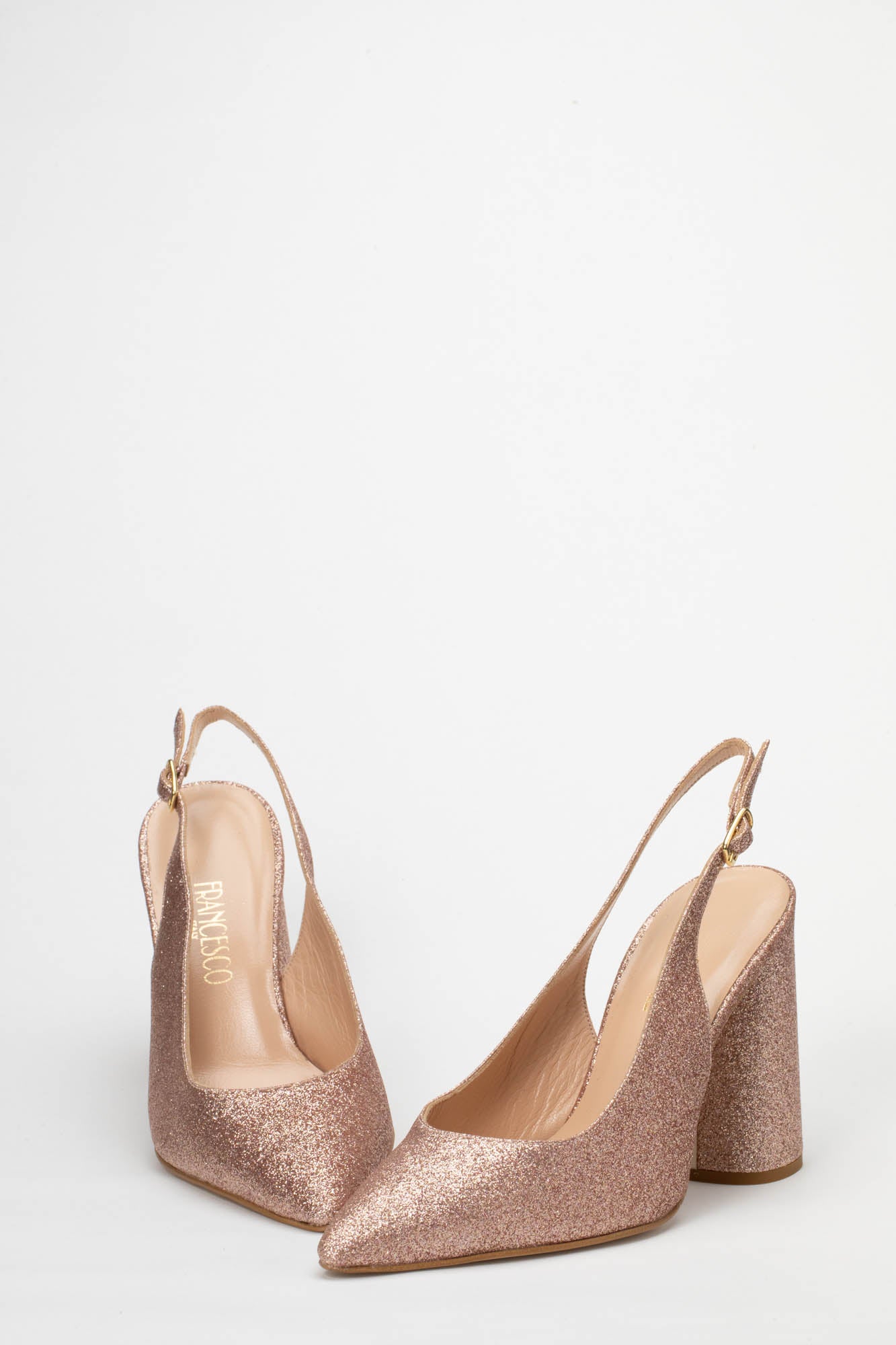 La scarpa Arlene 8912 è la quintessenza della femminilità moderna, pensata per la sposa o l'invitata che cerca un accessorio capace di unire un romanticismo senza tempo a un design architettonico e di tendenza. Questa raffinata décolleté slingback si veste di una sfavillante texture in glitter cipria, una tonalità delicata e calda che si fonde armoniosamente con la pelle, donando una luminosità discreta ma indimenticabile a ogni movimento. La scelta del rosa cipria rende questa calzatura estremamente versatile, perfetta per accompagnare abiti nuziali in pizzo, seta o organza, ma anche per elevare un look da cerimonia ricercato. L'iconico tacco cilindrico alto 9 cm. Questa particolare forma geometrica non solo conferisce alla scarpa un tocco d'avanguardia, ma offre una superficie d'appoggio più ampia rispetto allo stiletto tradizionale, garantendo una stabilità eccezionale durante tutta la giornata. Come per ogni nostra proposta, è possibile richiedere la personalizzazione del modello per renderlo unico: contattaci per scoprire come adattare questa creazione al tuo stile.