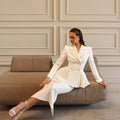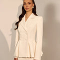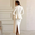 Completo gonna e blazer elegante, super pulito ed elegante con giacca strutturata e gonna liscia fino alle caviglie e spacco posteriore.