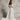 Abito da sposa realizzato in mikado. L'abito ha una linea a trapezio con scollatura con risvolto. La gonna è con piegoni e spacco che rivela una minigonna in Mikado elasticizzato sottostante. Il modello è rifinito con tasche e bottoni rivestiti in Mikado che si estendono fino alla fine dello strascico.
