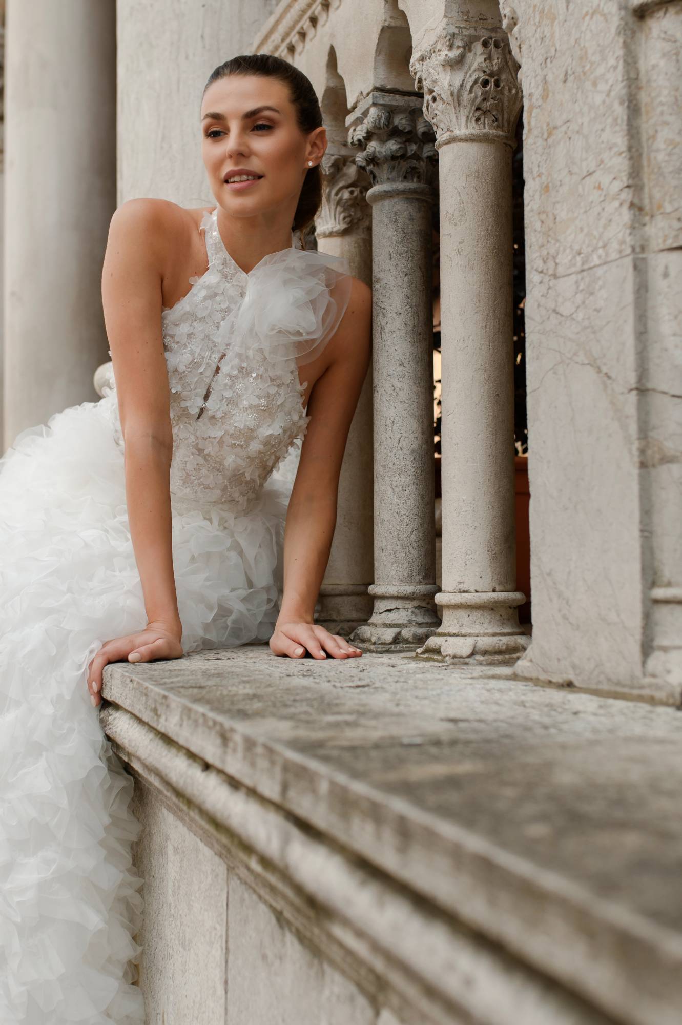 L’ideale è ordinare l’abito 9–12 mesi prima del matrimonio. Se invece hai tempi più stretti, in atelier trovi anche modelli in pronta consegna, da provare e portare a casa anche in giornata (in base alla disponibilità).
