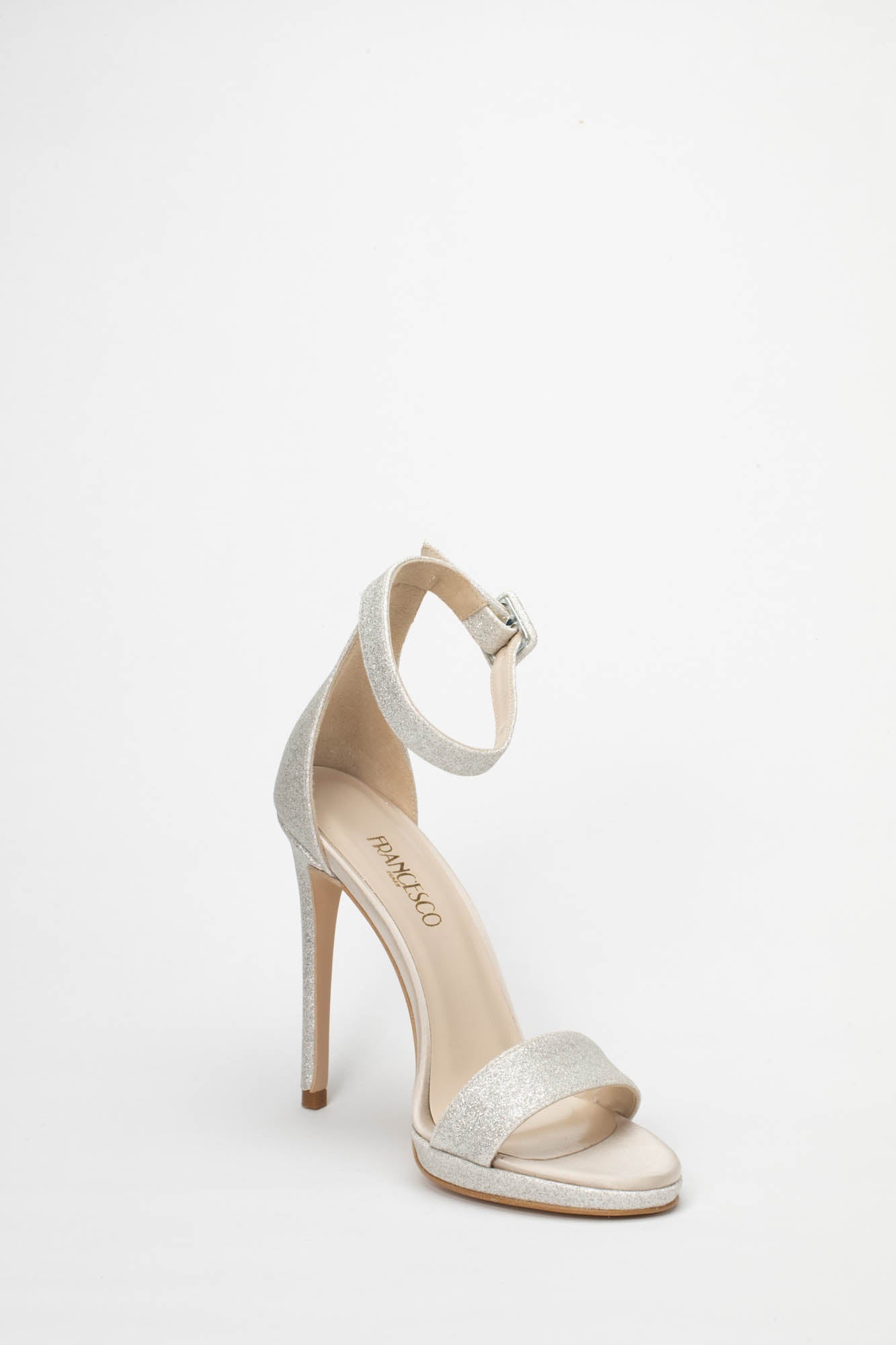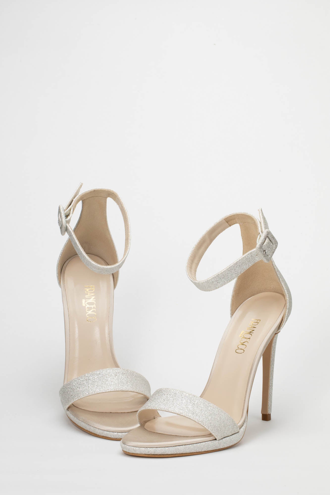 Il modello 9450 è la celebrazione della raffinatezza essenziale unita a una silhouette mozzafiato. Questo sandalo dal design pulito e senza tempo è realizzato in uno scintillante glitter platino che avvolge il piede con una luce preziosa. La struttura presenta un delicato listino anteriore e un elegante cinturino alla caviglia con fibbia rivestita, garantendo uno stile impeccabile e una tenuta sicura.