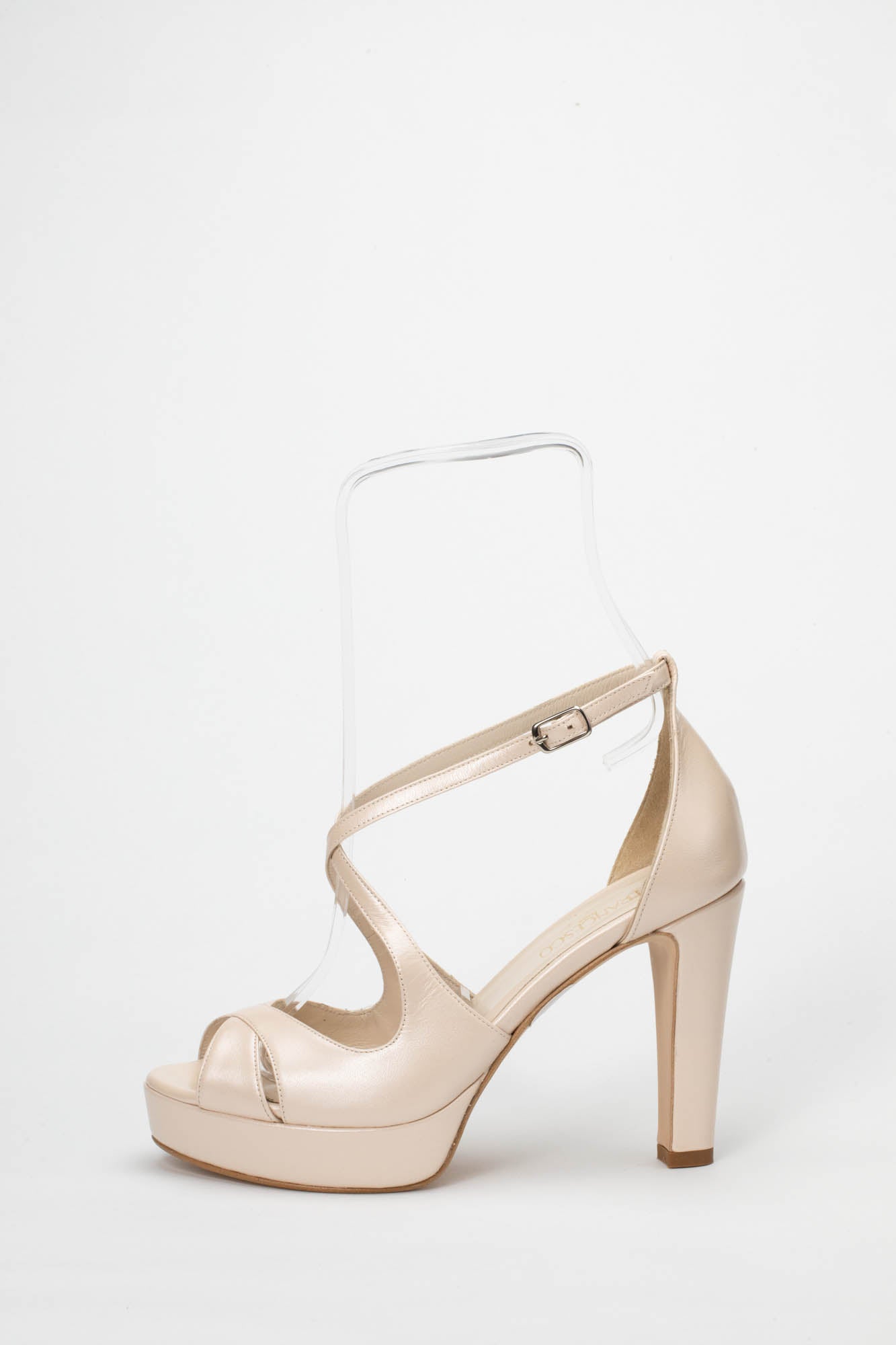 Il punto di forza di questa creazione è il tacco medio da 10 cm, caratterizzato da una base più larga rispetto allo stiletto classico, che garantisce un appoggio sicuro e una stabilità superiore. La presenza del plateau armonizza l'altezza, rendendo la calzata piacevole anche per cerimonie di lunga durata. Il design è impreziosito da un raffinato gioco di listini incrociati che abbracciano il piede, culminando in un sottile cinturino alla caviglia che assicura una tenuta perfetta a ogni passo. Interamente prodotta secondo la tradizione del Made in Italy, la calzatura Arianna 9372 si distingue per la qualità dei materiali e la cura sartoriale dei dettagli. È la scelta d'eccellenza per chi desidera un look sofisticato, puntando su una nuance neutra che allunga visivamente la figura e si abbina armoniosamente a tessuti preziosi come il pizzo, la seta o il mikado. Come per ogni nostra proposta, è possibile richiedere la personalizzazione del modello per renderlo unico: contattaci per scoprire come adattare questa creazione al tuo stile.